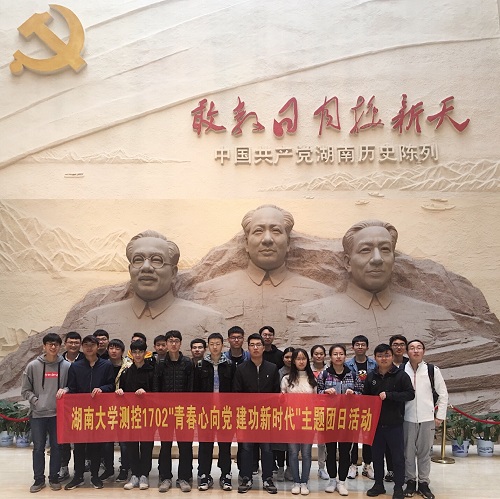 2019年正值“五四运动”100周年,“五四运动”孕育了爱国、进步、民主、科学的五四精神,至今仍是中国人民为中华民族伟大复兴而不懈奋斗的宝贵精神财富,更是在党的领导下中国青年锻造时代新人的宝贵精神财富。为了贯彻习近平新时代中国特色社会主义思想和党的十九大精神,纪念五四运动100周年,测控1702班举行了“青春心向党,建功新时代”主题团日活动,并于2019年4月12日早上集体参观了湖南省党史陈列馆,实地学习党的历史。
