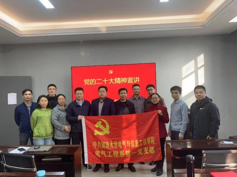 副院长许加柱在电气工程系教工第一党支部宣讲二十大精神。支部全体教师在校党员参加宣讲,支部书记周斌主持宣讲会。